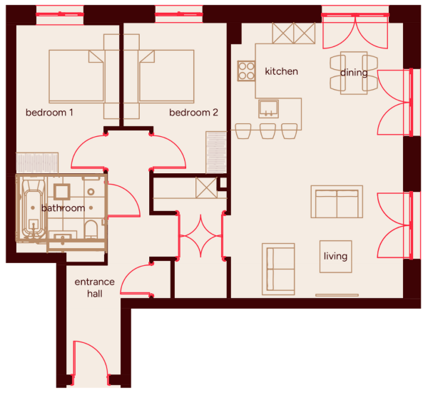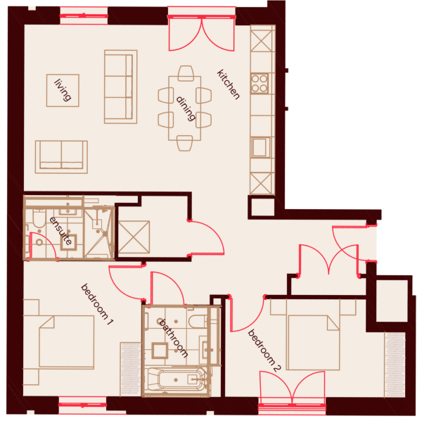 Our 2-bedroom apartments give you the flexibility of a second bedroom while keeping everyday life light and connected. Each home features a modern open-plan living area, a serene main bedroom, and a versatile second bedroom - perfect for a nursery, guest room, or home office. With high-spec interiors and a canalside setting, these homes make every day effortless.